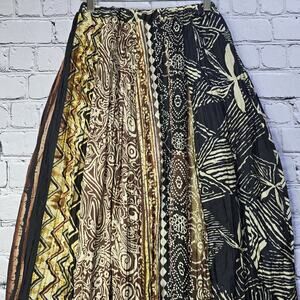 Vintage Chico's 100% Silk Shell Tribal African Print Pleated Maxi Skirt Size XS?