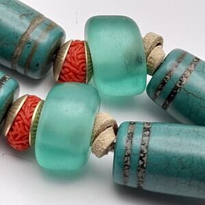 Vintage Chico's Boho 38 Inch Leather Glass Beads Long Tassel Necklace
