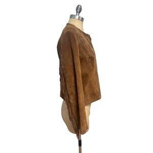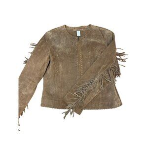 Vintage Chicos Brown Suede Fringe Jacket Size 1 Fits Small to Medium
