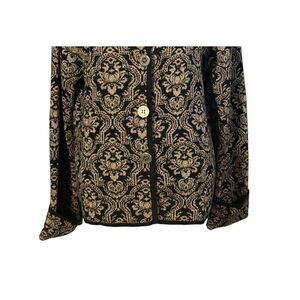 Vintage Chico's Cardigan Size XL Black Gold Metallic Button Front Glam Dressy