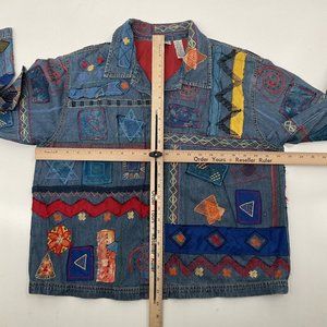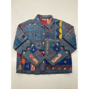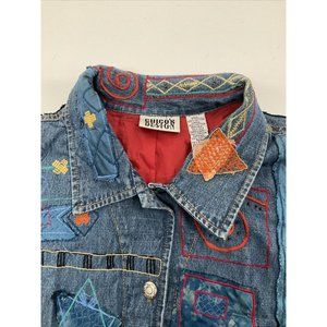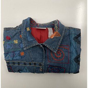 Vintage Chico's Denim Jacket Womens 2 Silk Patxhwork Designs Womens L/12
