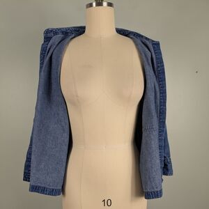 Vintage blue jean topper jacket / top / blouse from Chico's , size XL (Chico's size 3). 100% cotton, 3/4 sleeves, red accent stitching, pocket. Ideal for 90s, laggenlook, artsy, classic, and boxy vibes. Perfect for layering, business casual, spring, fall, and summer.