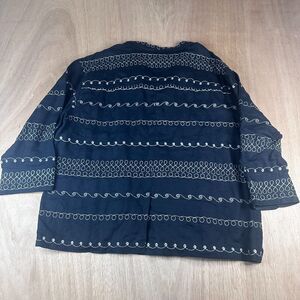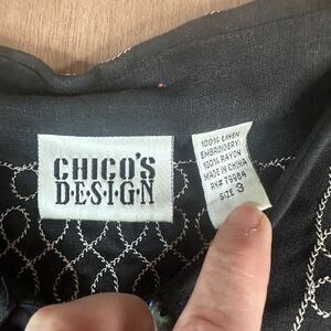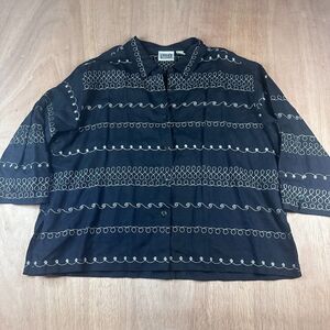 Vintage Chico’s Design Linen Top Embroidered Black Shirt Size 3 XL