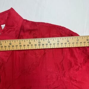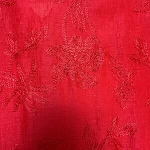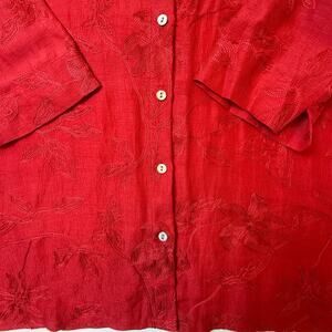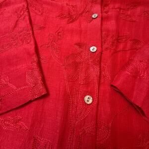 Vintage Chico’s Design Red Linen Silk Blend Floral Embroidered Shirt Size 1
