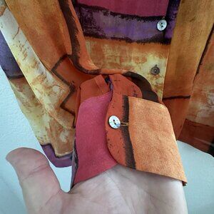 Vintage Chicos Design Sheer Blouse Womens 3 (L/16) Orange 100% Silk Art to Wear