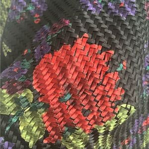 Vintage Chico’s Design Silk Floral Woven Blazer Jacket Basketweave Quilted Artsy