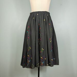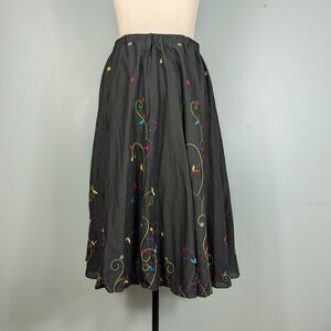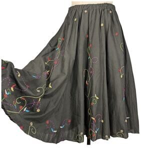 Vintage Chicos Midi Skirt Full Circle 90s Floral Embroider Boho Elastic M L