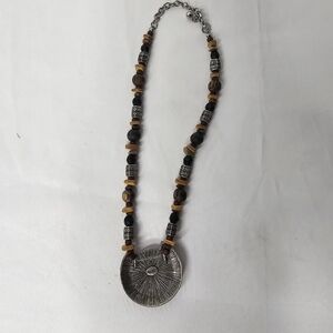 Vintage Chico's Necklace Statement BOHO Style Silver Tone & Lucite Medallion