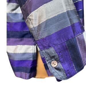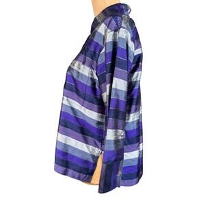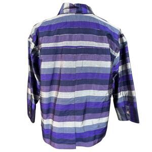 Vintage Chico's Silk 3/4 Sleeve Button Down Purple Stripe Size Large