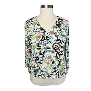 Vintage Chico's Travelers Top XL Abstract Artsy Floral Elastic Hem Made in USA
