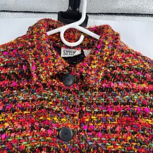 Vintage Chico’s Tweed Rainbow Boho Art to Wear Button Jacket Women’s 2 Large