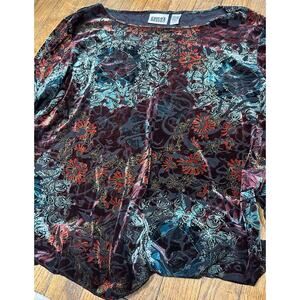 Vintage Chicos Velvet Burnout Mesh Floral Top Sz 2 Boho Whimsygoth Fairy