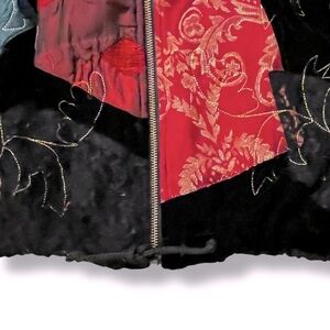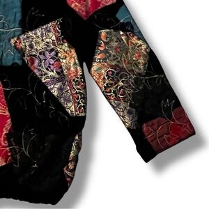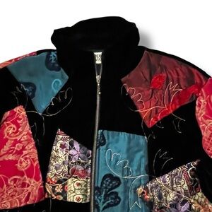 Vintage Chicos Velvet Patchwork Jacket quilted Full Zip Pockets Artsy Boho XL