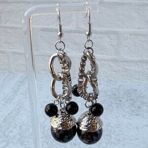 Vintage Chico’s Y2K Silver Chain Drop Earrings With Black Beaded Accents