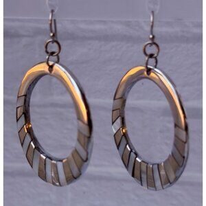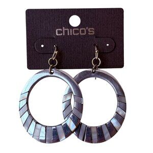 Vintage Chico’s Y2K Silver Hoop Earrings with Mother-of-Pearl Accents Modern NOS