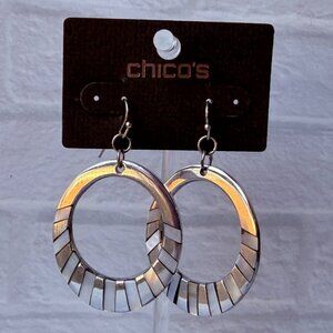 They measure approximately 2.25" long and 1-3/8" wide at the widest point, with comfortable ear wires and a lightweight but substantial presence. New on the original Chico’s card and never worn.