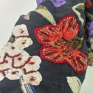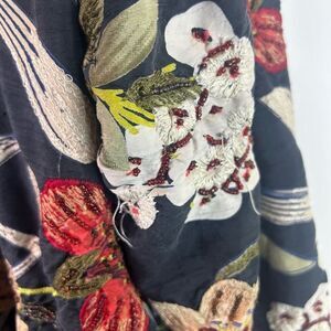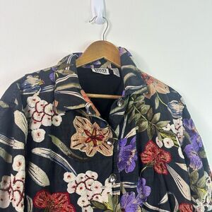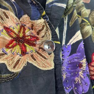 Vintage Chico’s Black Asian Floral Beaded Embroidered Silk Jacket Women's Size 2