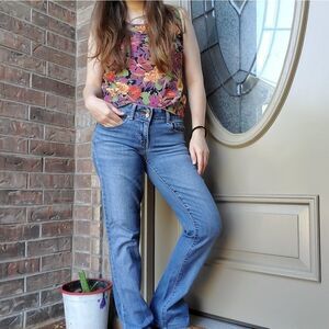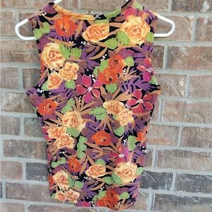 Chico's Design Women's Orange Tropical Floral Tank Top Sleeveless