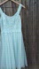 Icy mint green lace and chiffon peignoir/gown by Shadow line. structured like a dress, and totally wearable as such. all lace bodice front and back fitted and lined. darts at bust. three tiny bead and chiffon rosettes at neckline. very full gathered chiffon skirt, nylon lined. hem falls just below knee. attached long ties can be wrapped and tied front or back. armpit to armpit 16 inches, under bust 14 in, top of shoulder strap to hem 40 in. pull over. excellent vintage condition, no issues