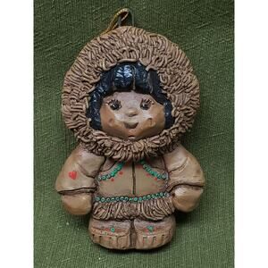 Vintage Child Eskimoppets Handmade & Painted Christmas Ornament Made in Alaska