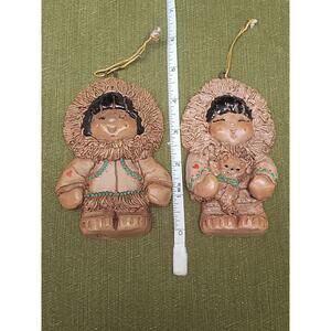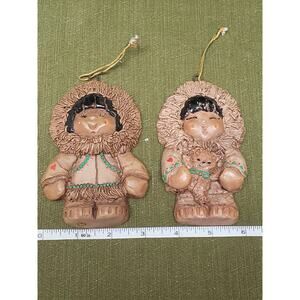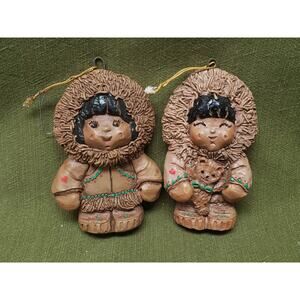 Vintage Eskimoppets Handmade & Painted Christmas Ornament Made in Alaska. Both are in excellent preloved condition.