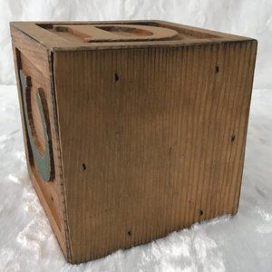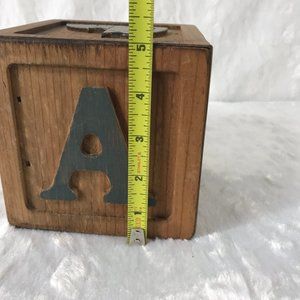 Vintage Children’s Wood Block A B C D Cat Carved Decor