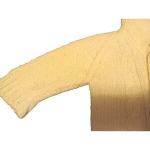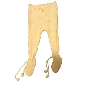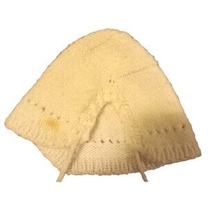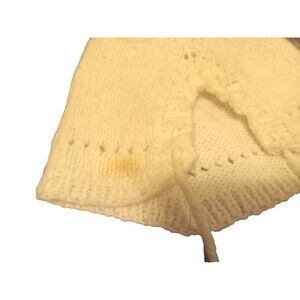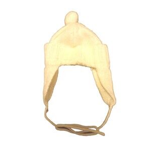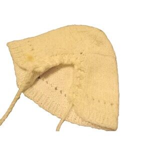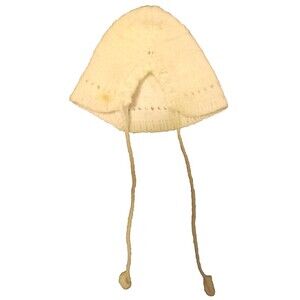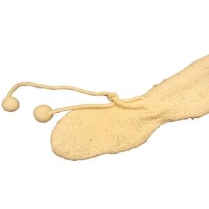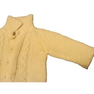 This vintage snow outfit for kids features a white acrylic material that will keep your little ones warm during outdoor activities. The outfit includes hats, gloves, a sweater, and pants that fit a toddler . Pit to pit 11 inches and a waist size of 18 inches.
