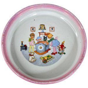 Vintage Childs Bowl Ceramic Baby Porridge Made Germany Dish 7.25” Porcelain Pink