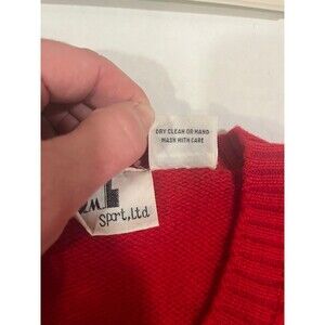 Vintage Childs Wool Sweater Red V- Neck Cable Knit 90s Winter Retro Cozy Classic