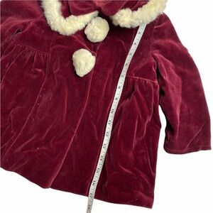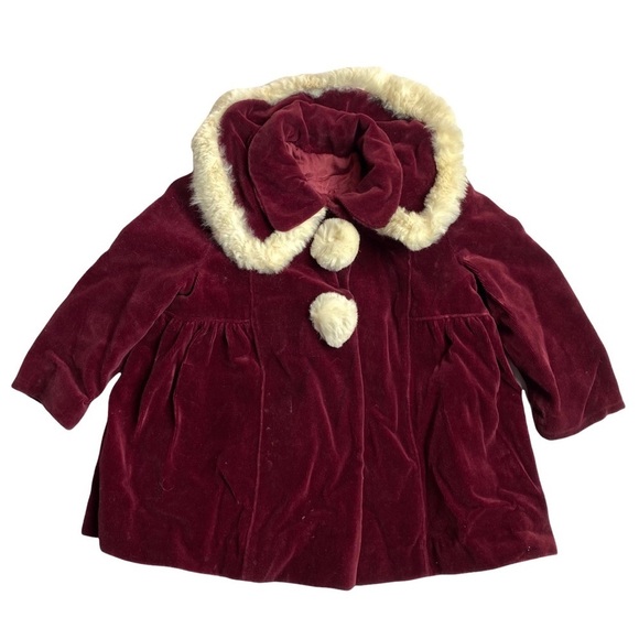 Vintage Child/toddler Cranberry Velvet Rabbit Fur? Trim Fancy Coat 50/60s