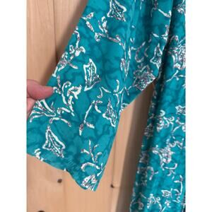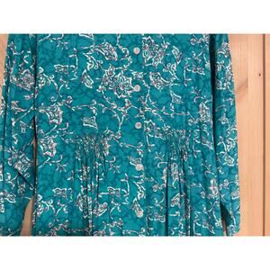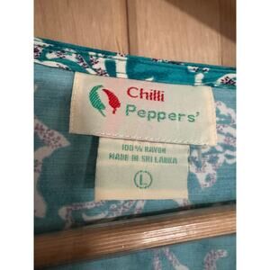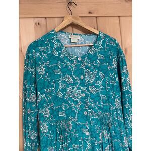 Vintage Chili Peppers 1990s Teal Long Sleeve Boho Long Button Front Dress Size L