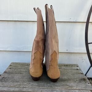 Vintage Chili's Brown Tan Leather Teju Lizard Print Low Heel Riding Boots