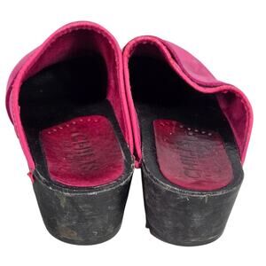 Vintage Chilis Hot Pink Clog Suede Leather Block Wood Heel Chunky Mules Retro 39