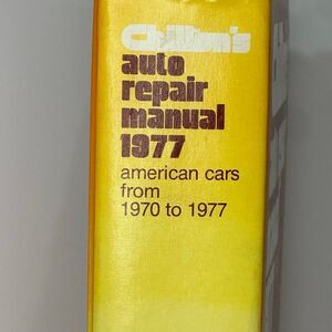 This is a hardcover book 8.5”x11”. This book is a comprehensive guidance for maintaining and repairing vehicles for American cars from 1970-1977. By Chilton Book Company. It has sections for method of indexing, car section, unit repair section, new models, metric conversion charts, pictures to show year identification, and more. This book has detailed instructions along with illustrations. Pre-Owned-Excellent condition.