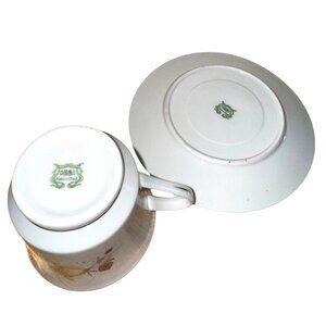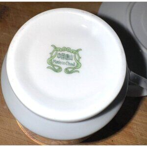 This elegant cup and saucer set features a beautiful floral design with golden accents. Crafted in China, this vintage set is both timeless and charming.