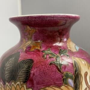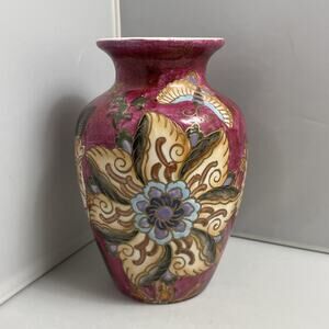 Vintage China Hand Painted Vase Flowers And Butterflies With Gold Accents