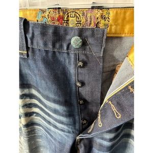 Vintage China rare factory distressed Jeans embroidered button dragon size 40