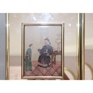 Vintage Chinese Art Prints Set of 2 Royal Couple Servants Gold Framed
