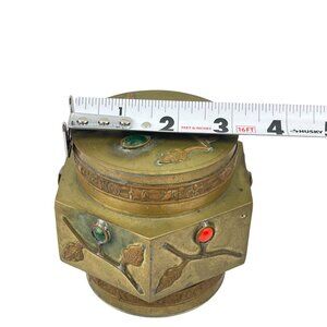 Vintage Chinese Brass Trinket Box With Enamel Inlays Decorative Lid Snuff