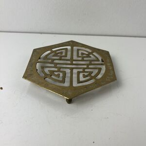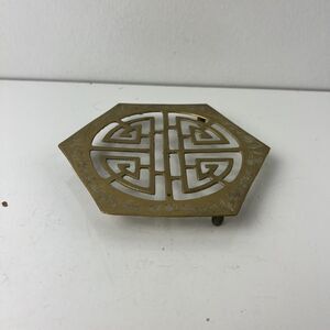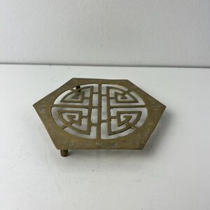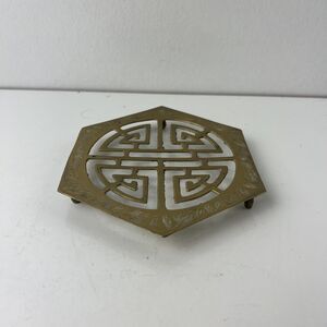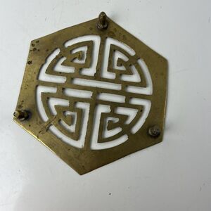 Vintage Chinese Brass Trivet Shou Longevity Symbol With Artistic Engravings