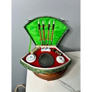 Vintage Chinese Calligraphy Writing Set in Brocade Case