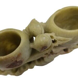 Vintage Chinese Carved Stone Double Vase With Floral Motif