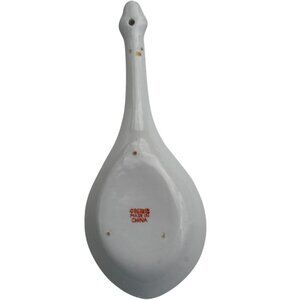 Vintage Chinese Ceramic Soup Spoon With Floral Design & Turquoise Glaze