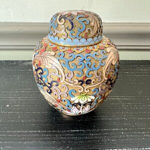 Vintage Chinese Cloisonné Enamel Floral Scroll Lotus Ginger Jar With Lid Etched