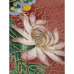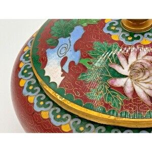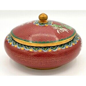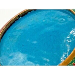 This Vintage Chinese Cloisonné Enamel on Bronze Lidded Bowl Trinket Dish showcases the intricate craftsmanship of Asian artistry. Made with bronze and adorned with multi-color enamel, this original piece adds a touch of elegance to any decorative display. The traditional floral design in teal color adds a unique and timeless charm to the piece, making it a valuable addition to any collection of decorative collectibles. Made in China, this cloisonné bowl exudes a sense of history and cultural significance that is sure to be a conversation starter in any home.