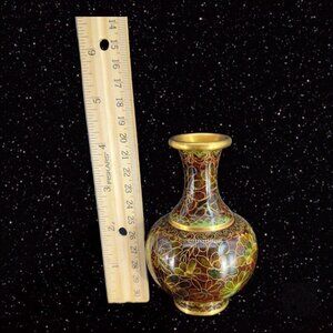 Vintage Chinese Cloisonné Metal Vase Blue Bottom Floral Design Hand Crafted 4"T
