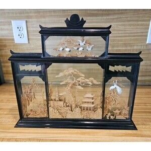 Vintage Chinese Cork Craving Diorama 4 screens handmade 17”L X3” W 15” H