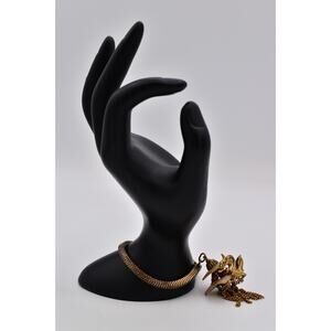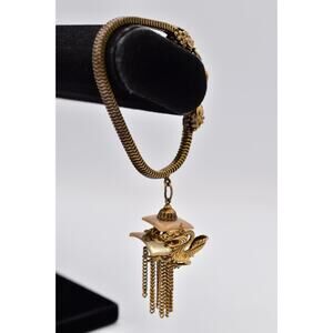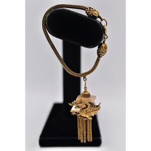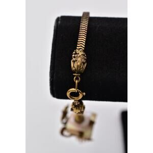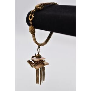 Vintage Chinese Dragon Charm Bracelet Antiqued Gold Abalone Shell 1960s BinAD