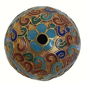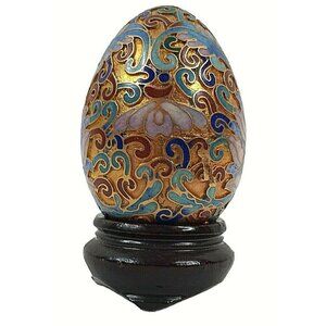 Vintage Chinese Egg Cloisonné Enamel on Brass on Stand 3"