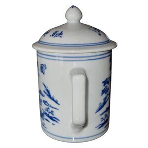 Vintage Chinese Export Blue and White Porcelain lidded tea cup 5.5”x 3.5”